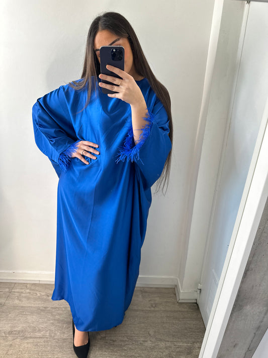 Abaya à plumes bleu