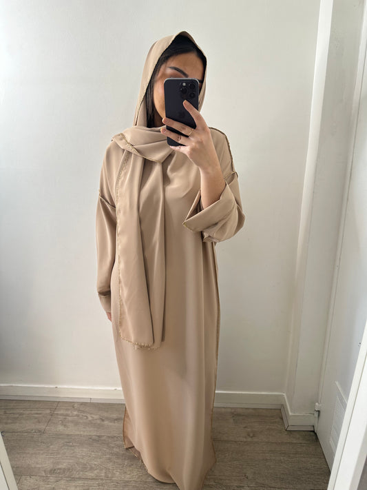 Abaya voile intégrée camel