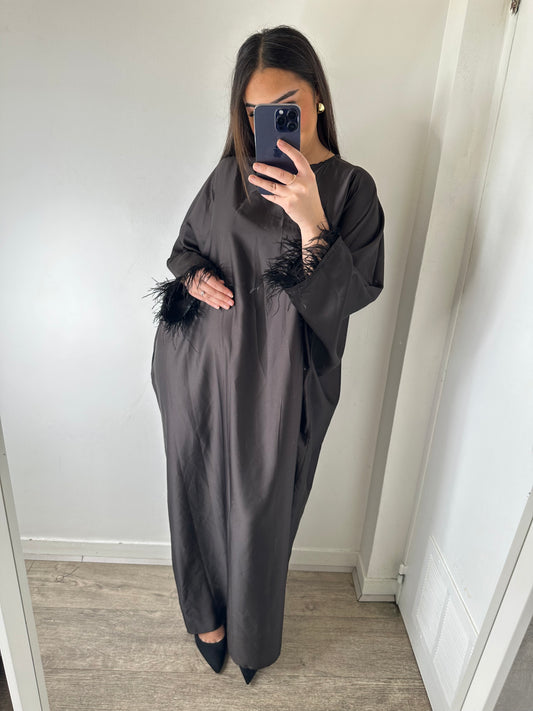Abaya à plumes satin noir