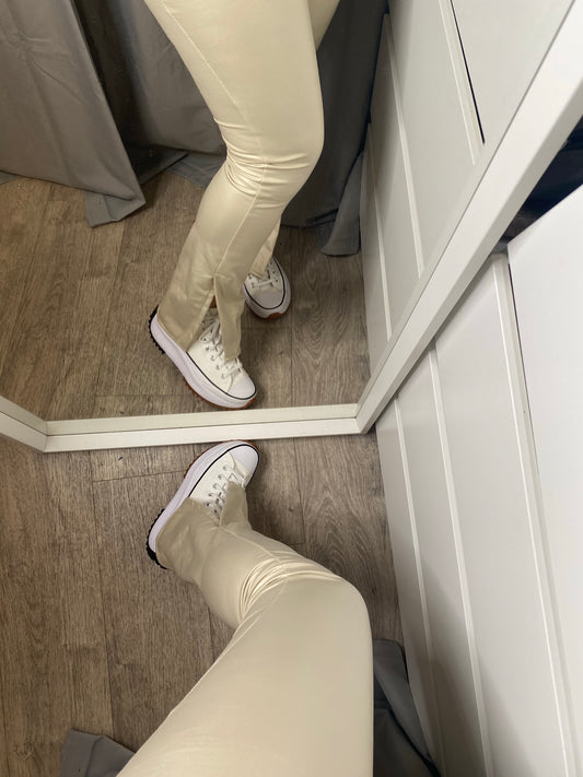 Legging à fente simili cuir beige