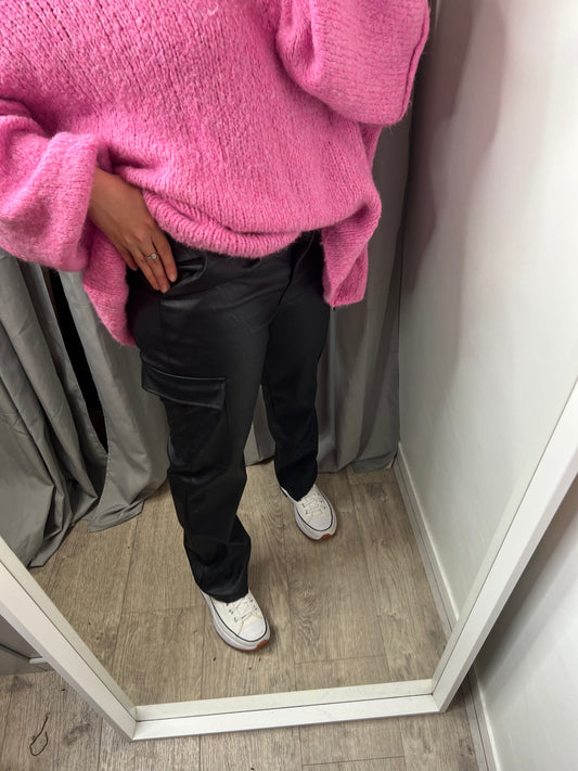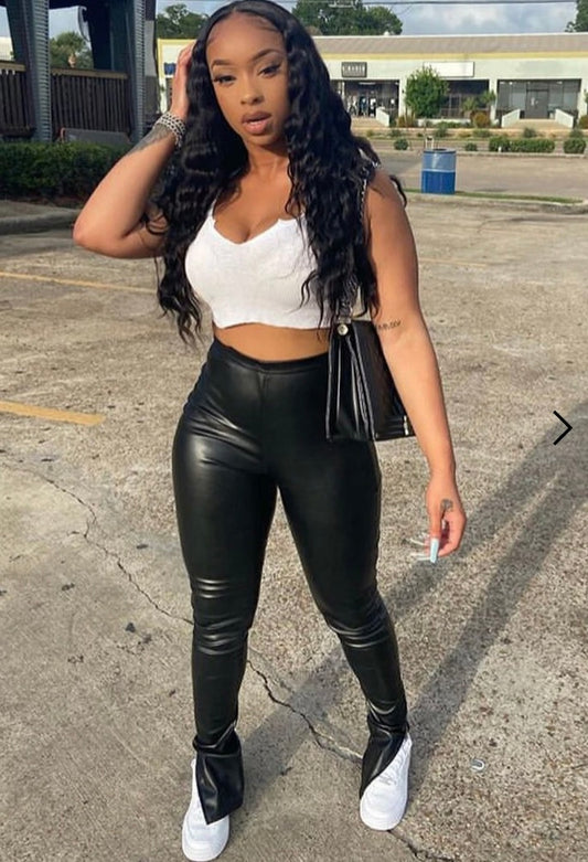 Legging à fente simili cuir noir