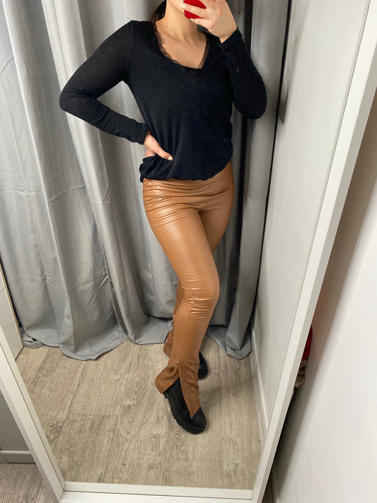 Legging simili cuir a fente camel