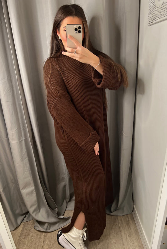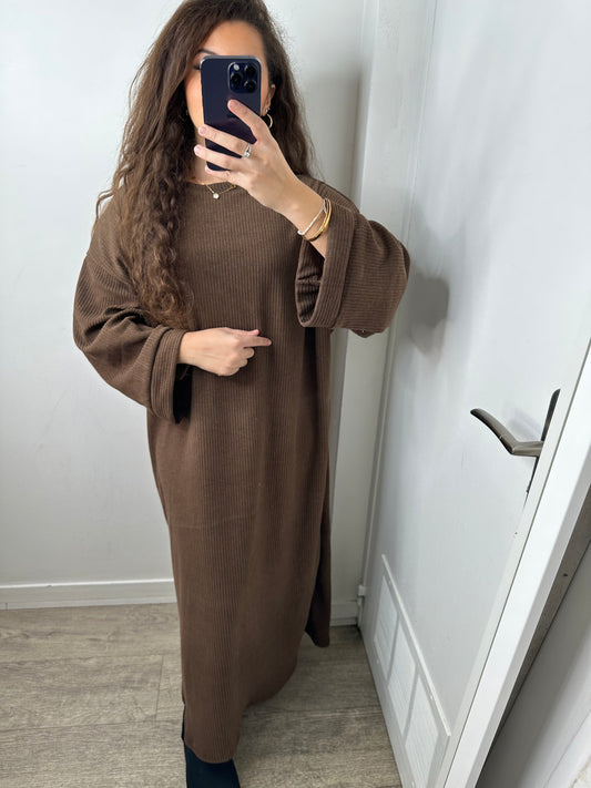 Robe en laine marron avec fente